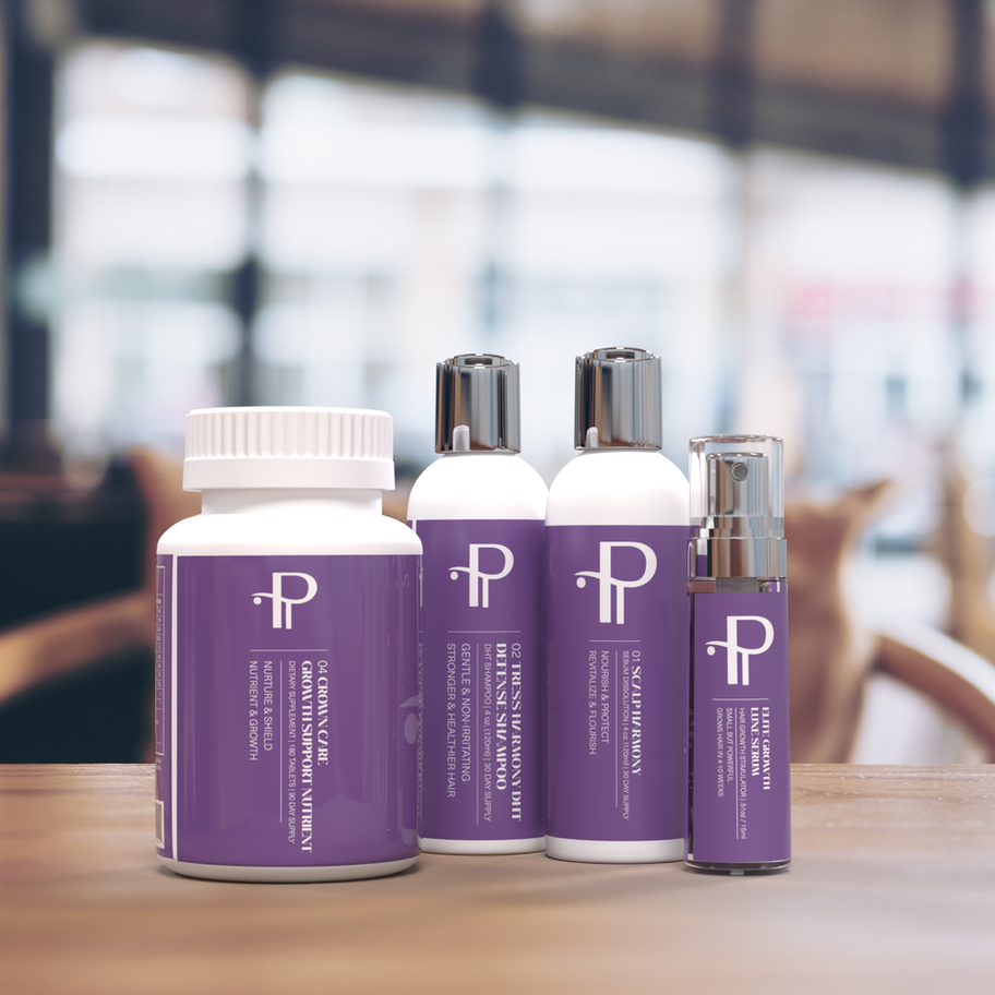 Includes: Scalp Harmony, Tress Harmony DHT shampoo, Crown Care Nutri treatment, Crown Care Growth Support, Elite Growth Luxe Serum (2). This is a 3 month supply